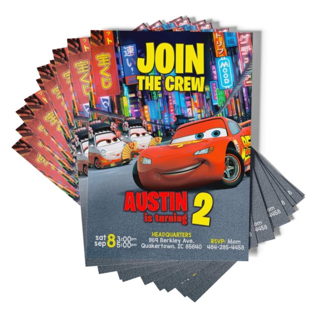 - Design: Cars movie-themed birthday invitation.