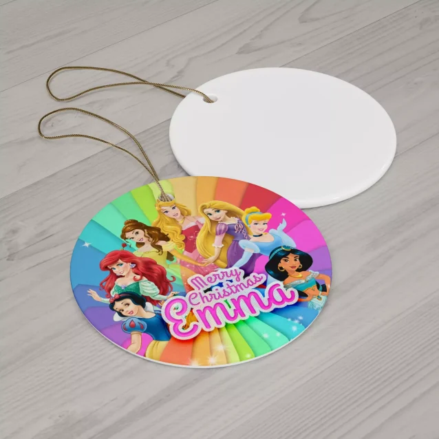 Make this holiday season truly magical with our unique and personalized Disney Princess Christmas ornament. Crafted from high-quality ceramic and adorned with a glossy finish, this exquisite ornament features a one-sided print of your child’s name and their favorite Disney Princess, making it a truly special gift.