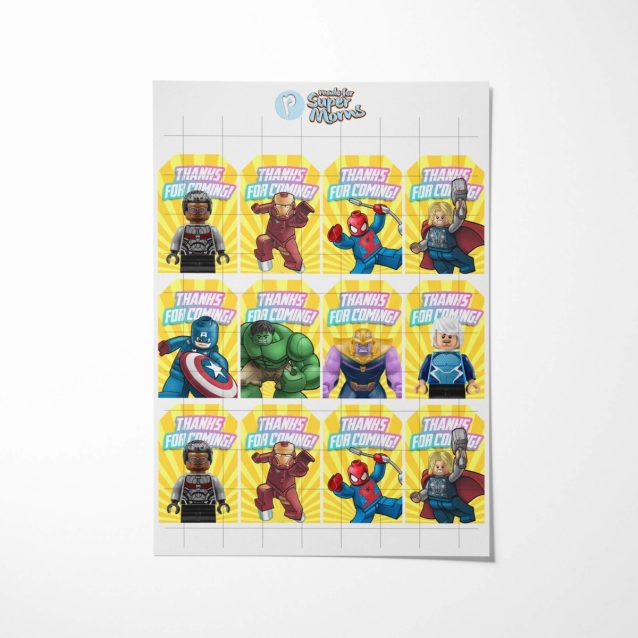 Choose printable Lego Avengers thank you tags to decorate your birthday gift and goodies and transform your kids’ party into cartoon adventure.