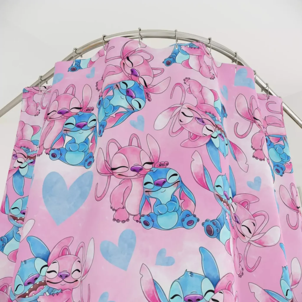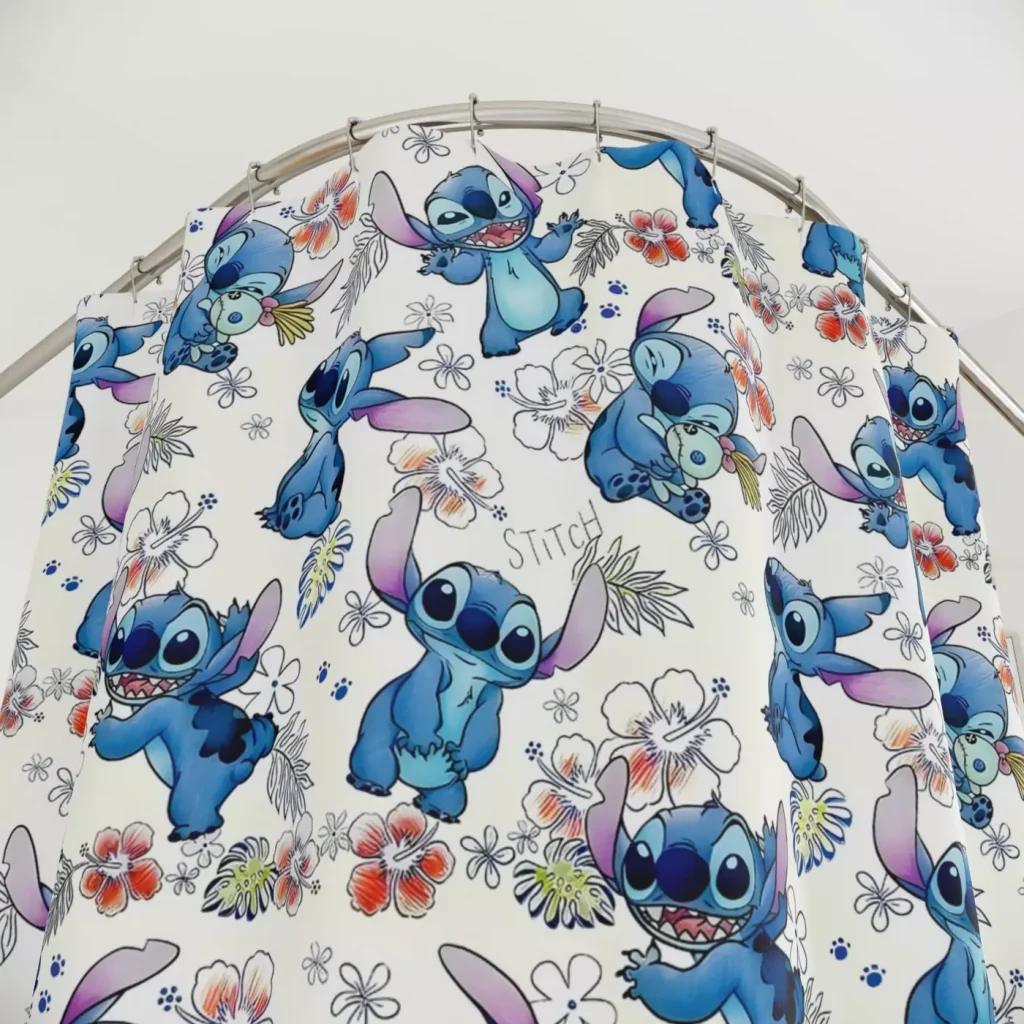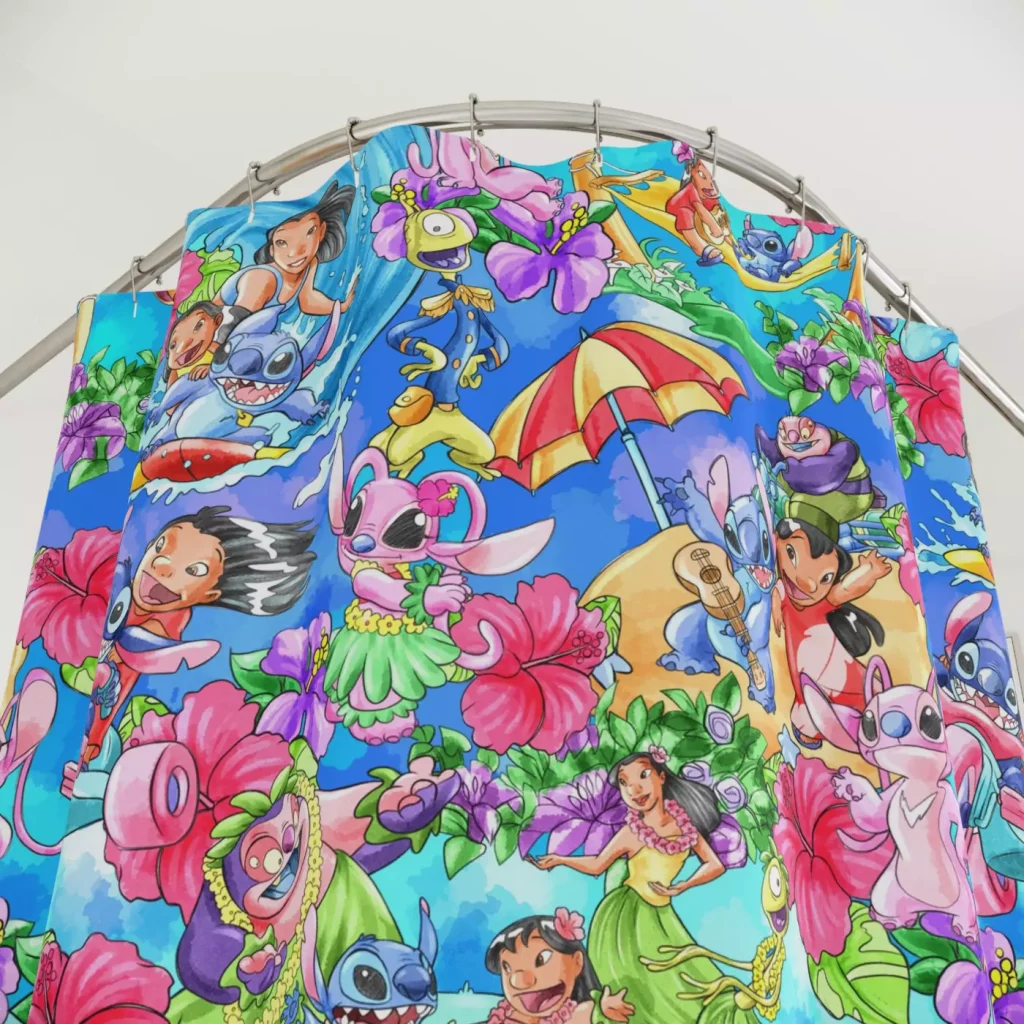 Keeping your Lilo & Stitch shower curtain looking its best is simple. It’s safe for machine or hand washing in cold water. For best results and to maintain its vibrant colors, air drying is recommended. Please do not use bleach or tumble dry.