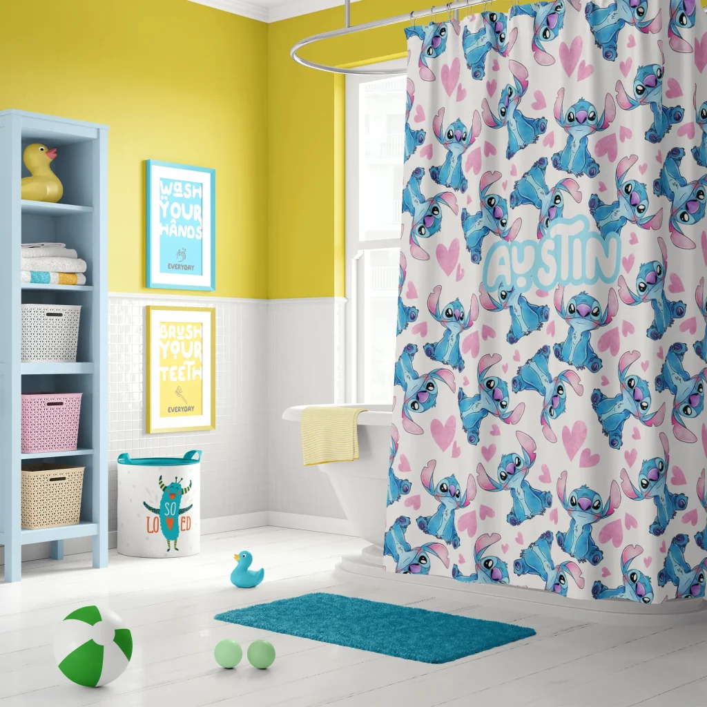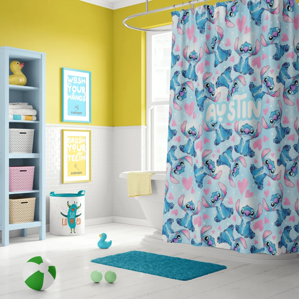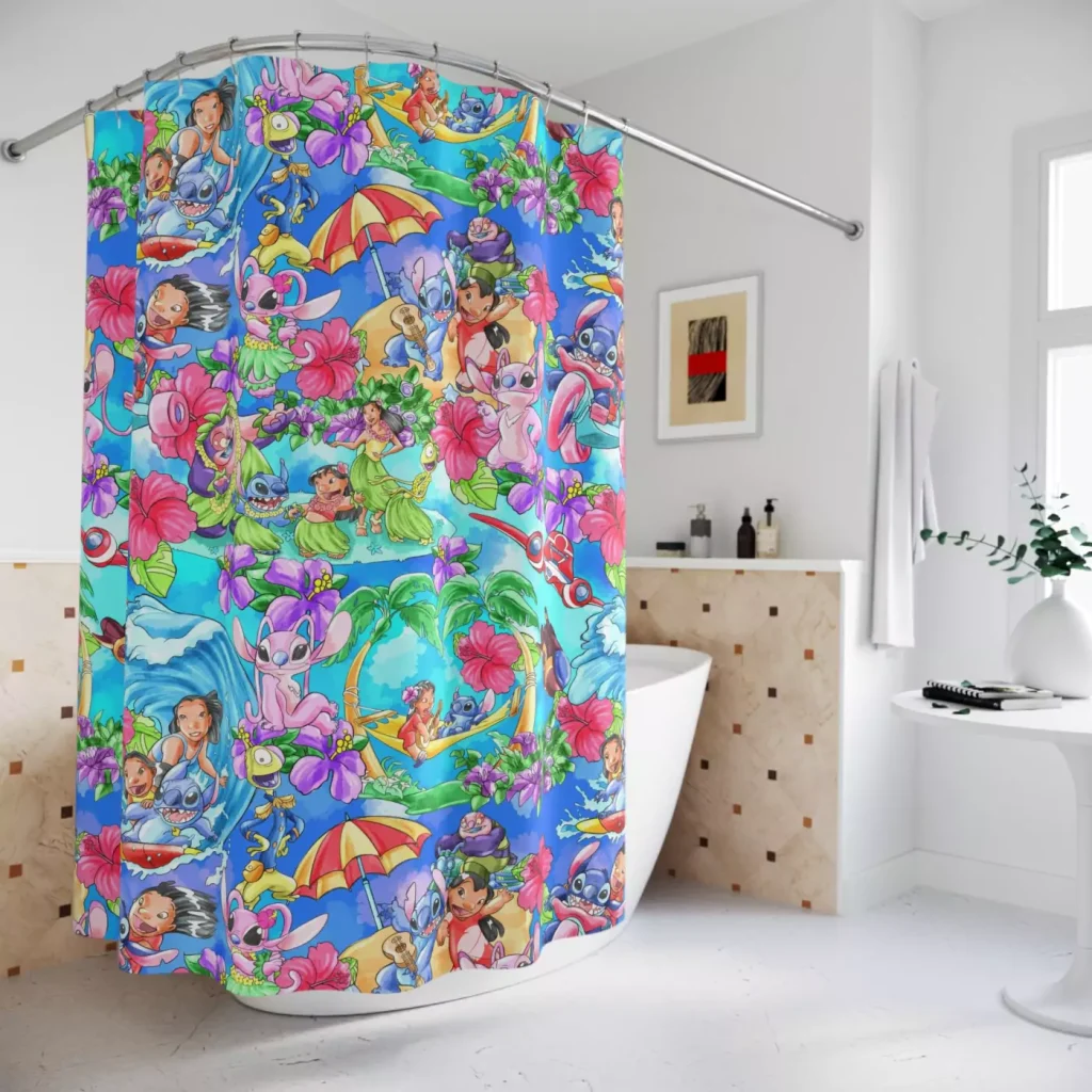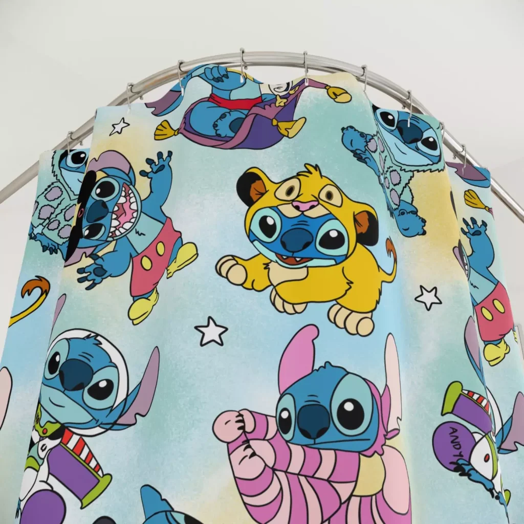 Keeping your Lilo & Stitch shower curtain looking its best is simple. It’s safe for machine or hand washing in cold water. For best results and to maintain its vibrant colors, air drying is recommended. Please do not use bleach or tumble dry.