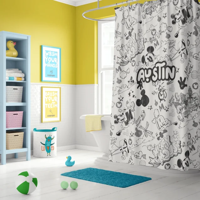This curtain isn’t just fun; it’s built for durability. Crafted from 100% high-quality microfiber, our shower curtains are designed to be long-lasting while remaining soft to the touch. The high-definition, one-sided print brings Mickey and his friends to life in vibrant, fade-resistant color that will withstand daily use. Designed to fit most standard tubs, this water-resistant shower curtain expertly keeps water from splashing onto your floor, making cleanup a breeze.