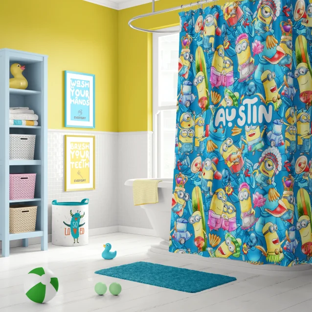 Transform your child’s bathroom into a delightfully mischievous Minions hideout with a Personalized Minions Shower Curtain! This vibrant and fun kids shower curtain, inspired by the beloved Despicable Me movies, is the perfect way to add a splash of personality and excitement to their daily routine. Imagine their delight seeing Kevin, Stuart, Bob, or their own name featured on a custom shower curtain designed just for them!