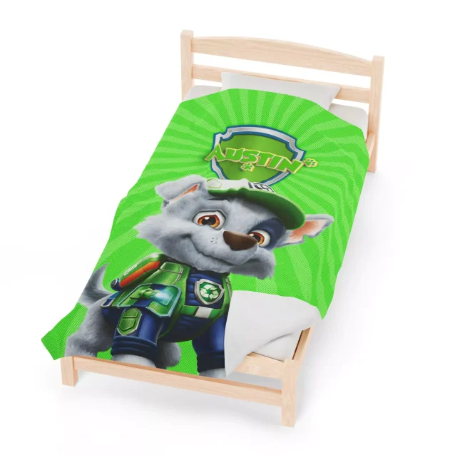 Unleash Pawsome Dreams with a personalized Paw Patrol Rocky Fleece Blanket! Calling all Paw Patrol fans! Looking for the ultimate cuddle companion for your little hero? Look no further than our super-soft, personalized Rocky throw blanket!
