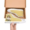 Cleaning high-top canvas sneakers is a simple and straightforward process. For minor dirt or scuffs, spot cleaning is usually sufficient. For a deeper clean, remove the laces and any removable insoles. Create a gentle laundry detergent and warm water solution, and use a brush to clean the cans and laces. Wipe with a cloth to remove any soap residue. To maintain their shape, stuff the sneakers with paper towels and let them air dry completely. This easy maintenance routine should give you the confidence to keep your canvas kicks in top shape without any hassle.