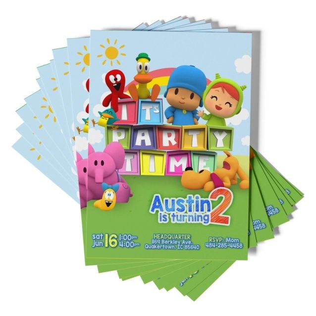 For a whole new birthday experience, party ideas, and printables, check our Pocoyo party supplies. If you want anything to change color, headline, additional message, or you are looking for different personalized birthday invitation designs, you can request a custom order.