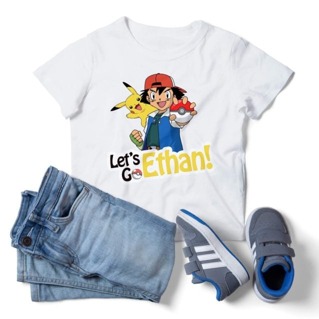 Choose Pokemon Shirt Iron On Transfer digital personalized file and print it NOW on your favorite shirt. Get famous Pikachu and Ash together with the empowering headline “Let’s Go”.