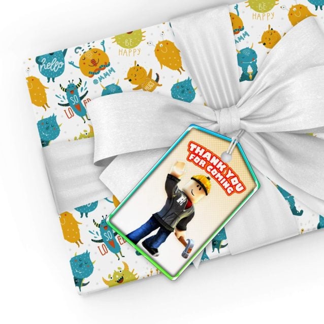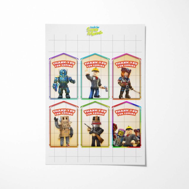 For more Roblox printables, party ideas, and party favors, check our Roblox party supplies. If you are looking for different personalized Roblox birthday party tags, you can request a custom order.