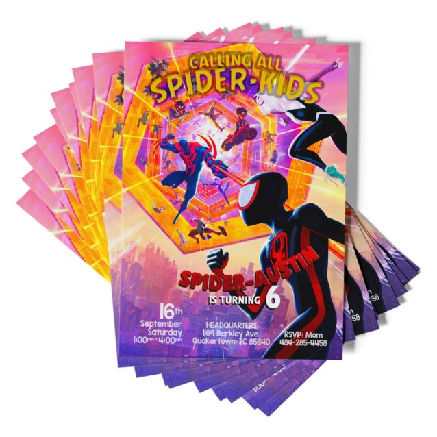Check out our personalized Spiderman Across The Spider-Verse Invitation that can be customized to your liking. With the option to print it at home, you can easily create a memorable celebration.
