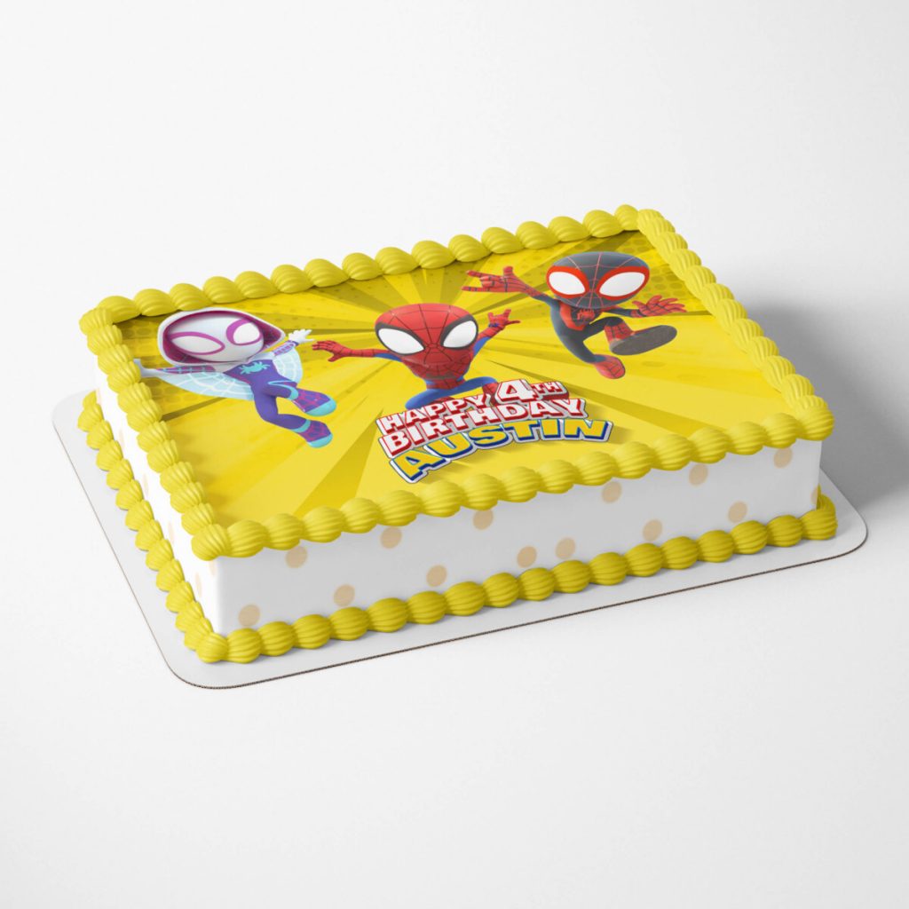 Whether they’re celebrating at home or at a friend’s, it’ll add a splash of tasty fun to the festivities. So assemble your web-slinging cake decor and let the birthday adventure begin!