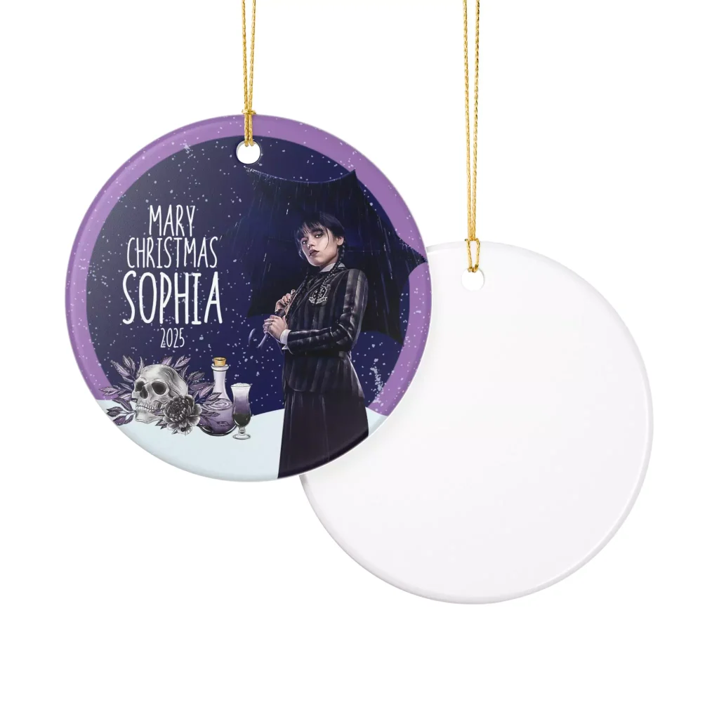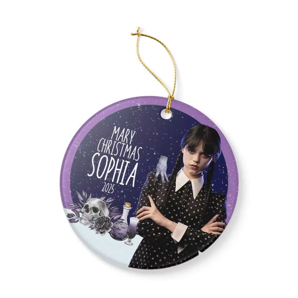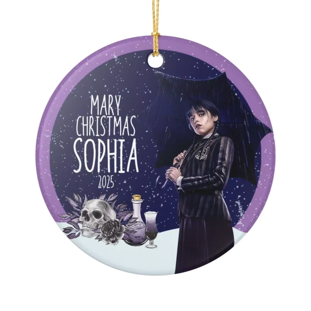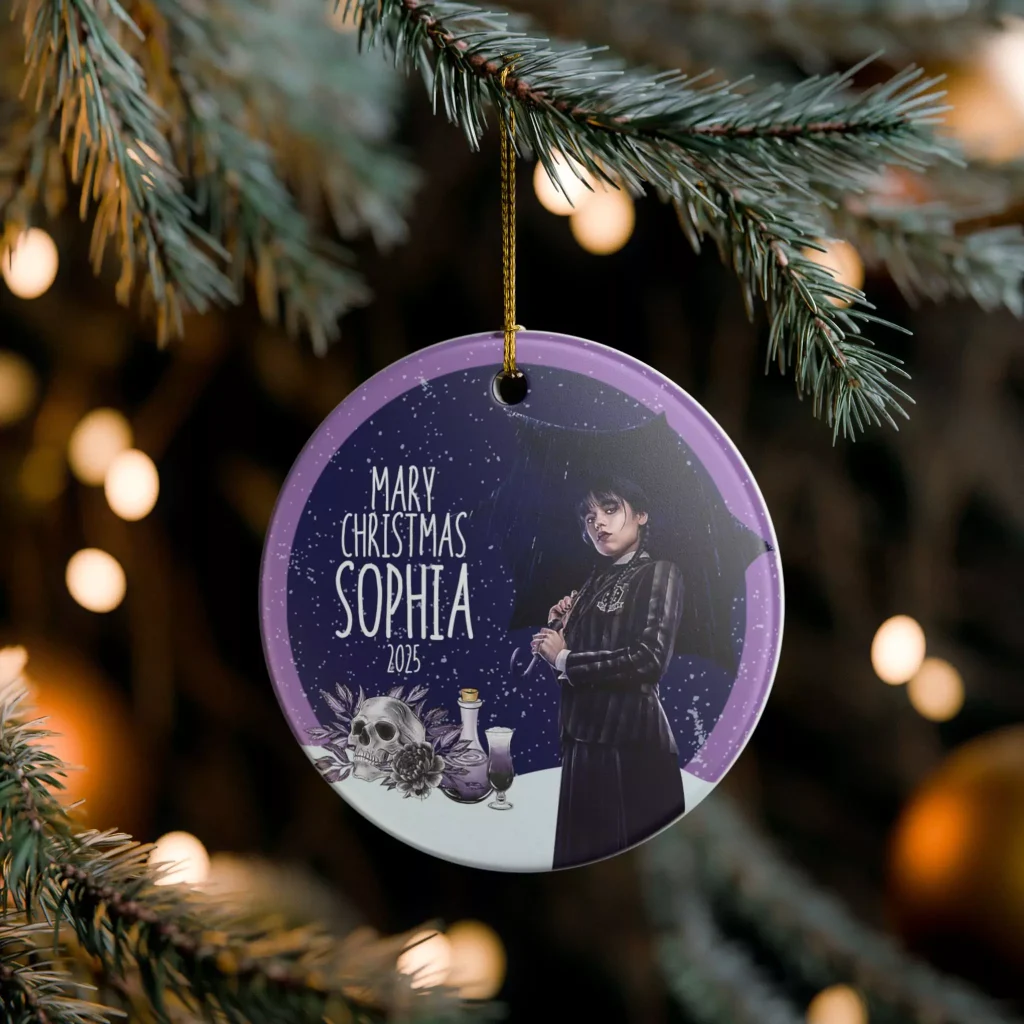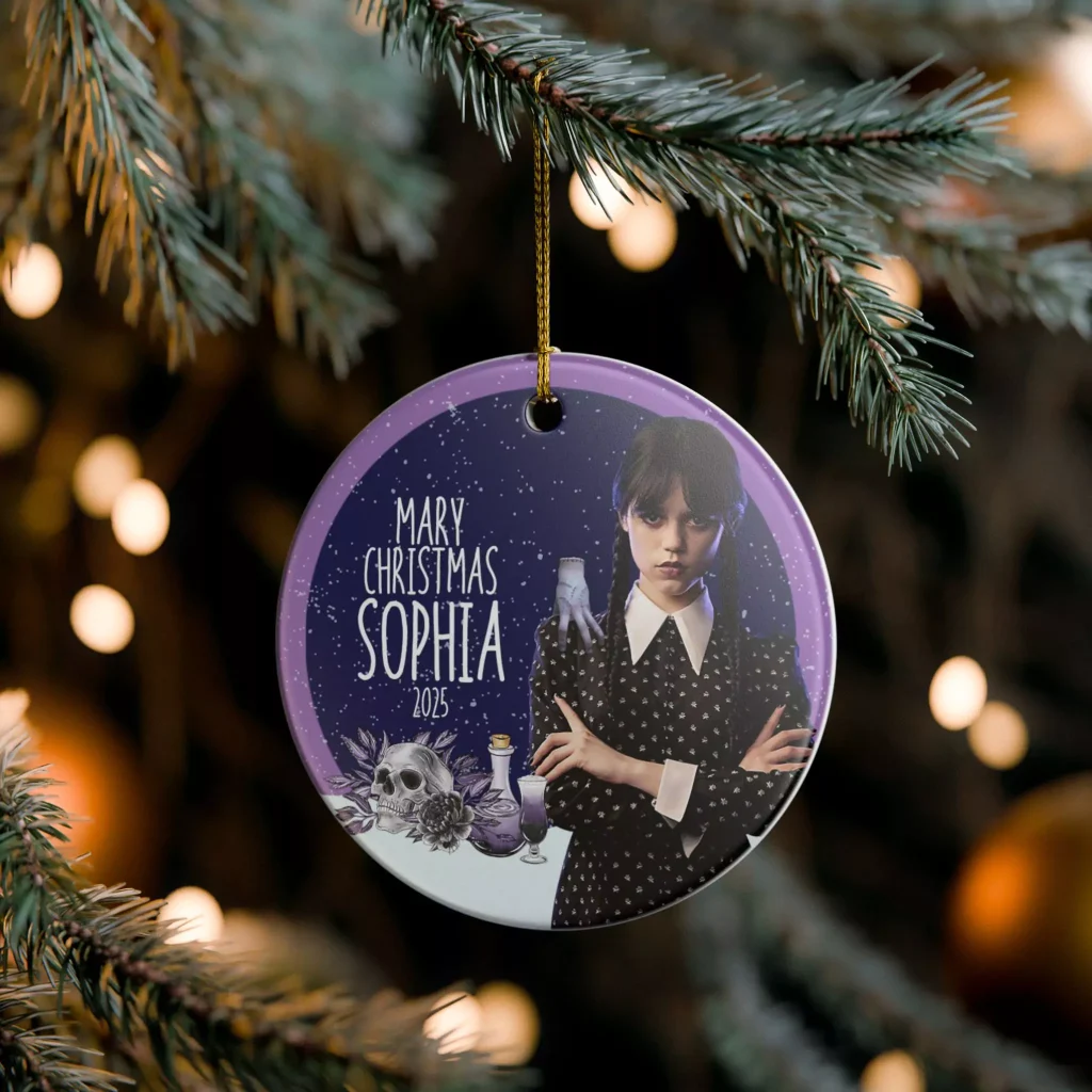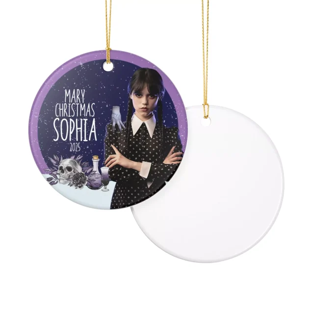 Embrace the gloomier side of the festive season with our Wednesday Addams Christmas Ornament. Inspired by the iconic Addams Family daughter and her adventures at Nevermore Academy, this unique holiday ornament is the perfect piece of macabre decor for those who prefer their Christmas with a touch of shadow. Its stylized design captures Wednesday’s trademark deadpan expression and classic black-and-white attire, making it an instantly recognizable figure for any fan of the hit Netflix series.